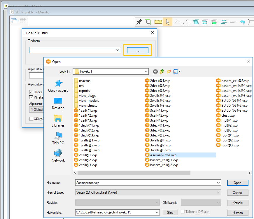 - Napsauta painiketta, jossa on kolme pistettä ja valitse ladattava piirustus projektikansiosta.