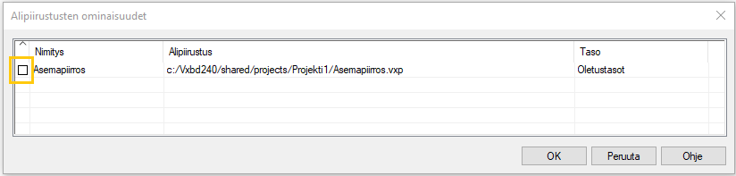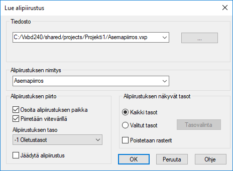 - Osoita alipiirustuksen paikka.