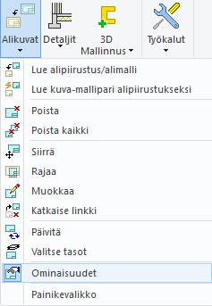 - Lopuksi kytke alipiirustus pois näkyvistä toiminnolla Mallinnus | Piirtäminen | Alikuvat > Ominaisuudet.
