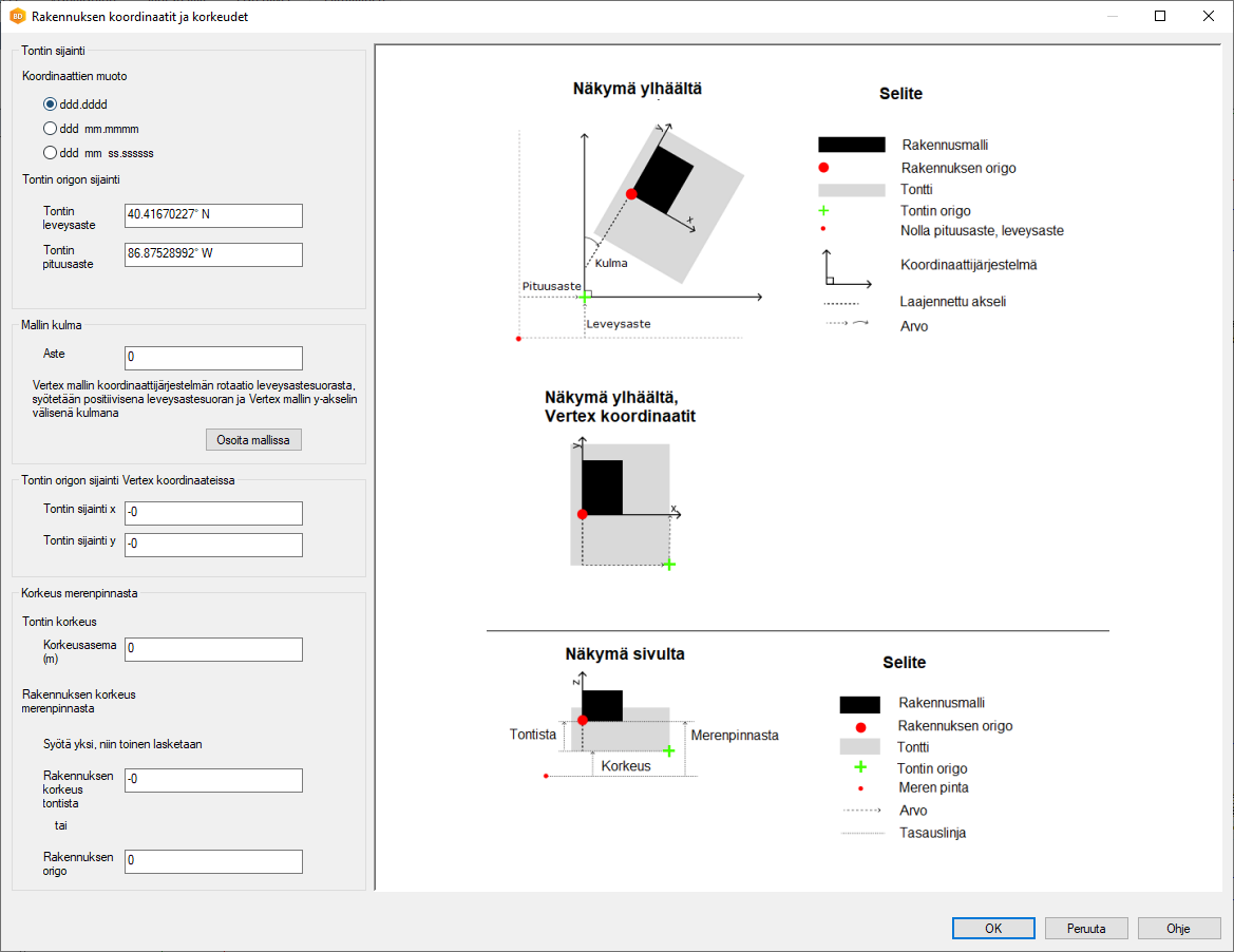 Rakennuksen koordinaatit ja korkeudet