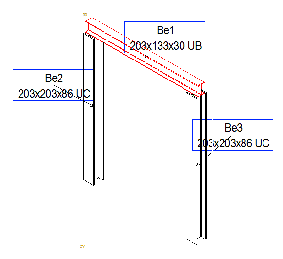 Poista ensin Kohteiden tunnukset -valinta ensimmäiseltä sivulta, Piirros-välilehdeltä valitse "Näytä tunnussäännöt" -kirjasto ja "Beam Panel Labels with Leader Lines".