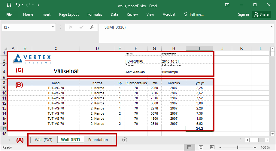 Excel-raporttipohjan rakenne