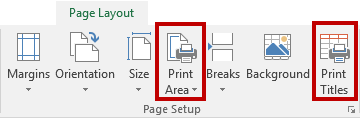 Voit määrittää taulukkoon tulostusalueen ja tulostusotsikot Excelin Sivun asettelu (Page Layout) -välilehden toiminnoilla.
