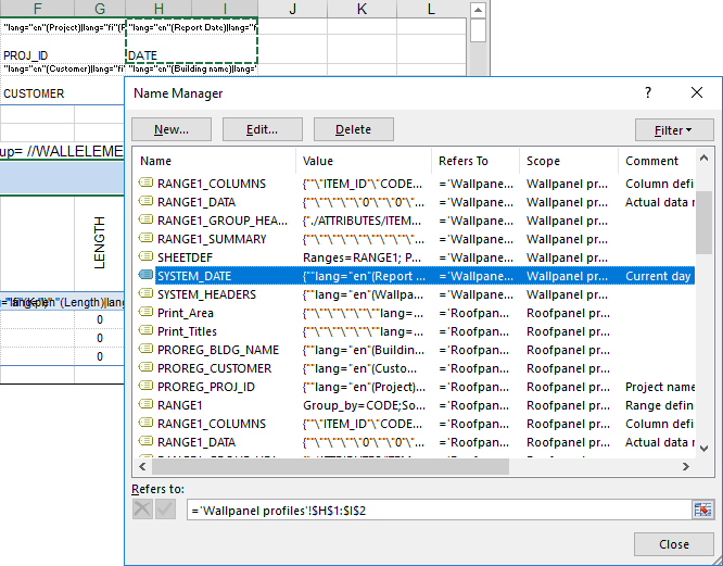 Järjestelmätietoja voidaan lisätä nimeämällä alue muodossa SYSTEM_<unique_name>. Nimetyn alueen solun sisällön tulee vastata jotakin seuraavista esimääritellyistä arvoista: