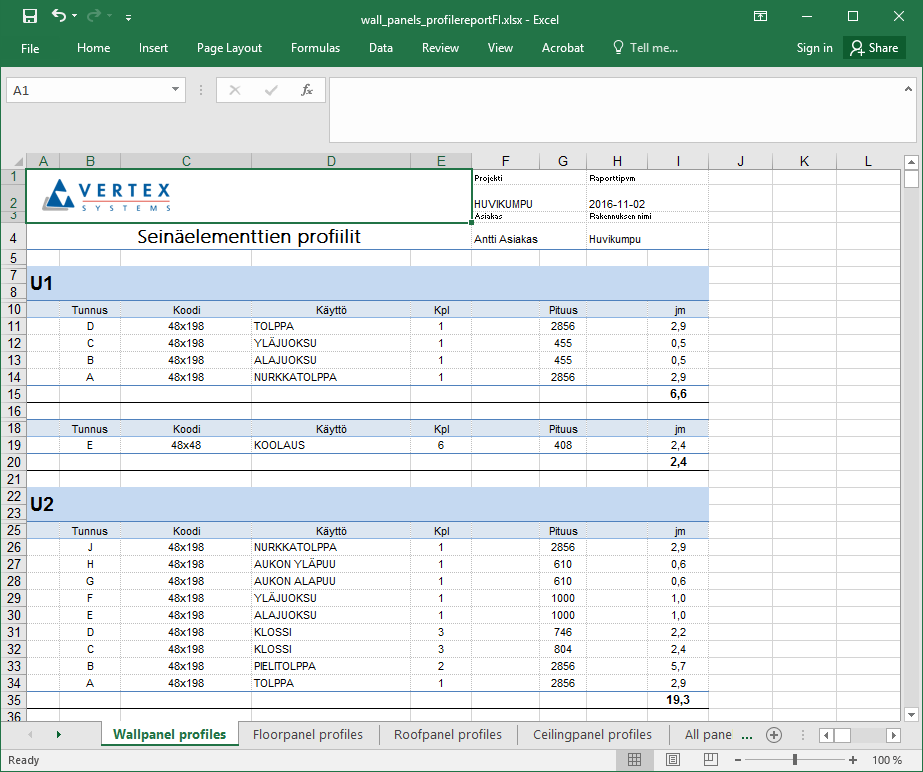 Excel-materiaaliraportin lähteenä käytetään XML-tiedostoa. Tiedostosta haettavat komponentit ja niiden attribuutit sekä tietojen järjestely ja asettelu taulukossa määritetään raporttipohjassa (XLSX-tiedosto). Tiedot haetaan XML-tiedostosta XPath-kyselykielen avulla.