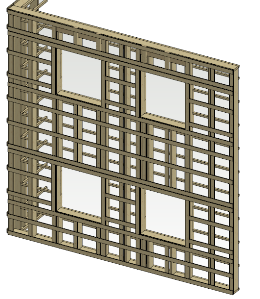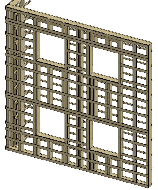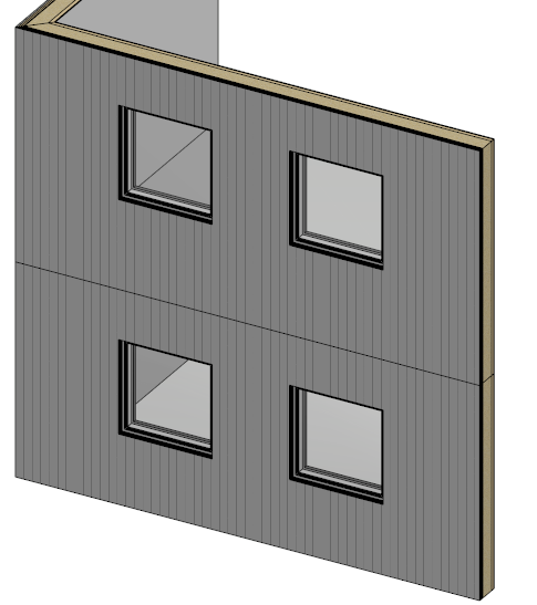 Lisää seinä arkkitehtimallissa ensimmäiseen kerrokseen kahden kerroksen korkuisena. Aseta seinä näkyviin toisen kerroksen pohjakuvassa, tai heijasta seinän geometria toiseen kerrokseen. Suunnittele tavalliseen tapaan lisäämällä ikkunat jne. Tee seinästä elementti ja lisää osat.