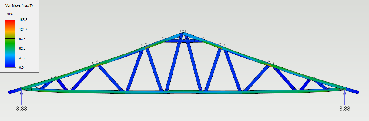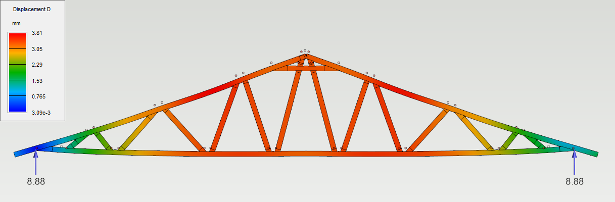 Valitse rasitussuureeksi Siirtymä ja aseta Näytä tukivoimat-asetus päälle.