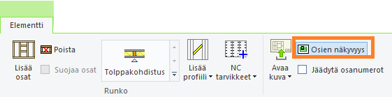 - Valitse elementti (ALT-näppäin pohjassa), sitten toiminto Osien näkyvyys.