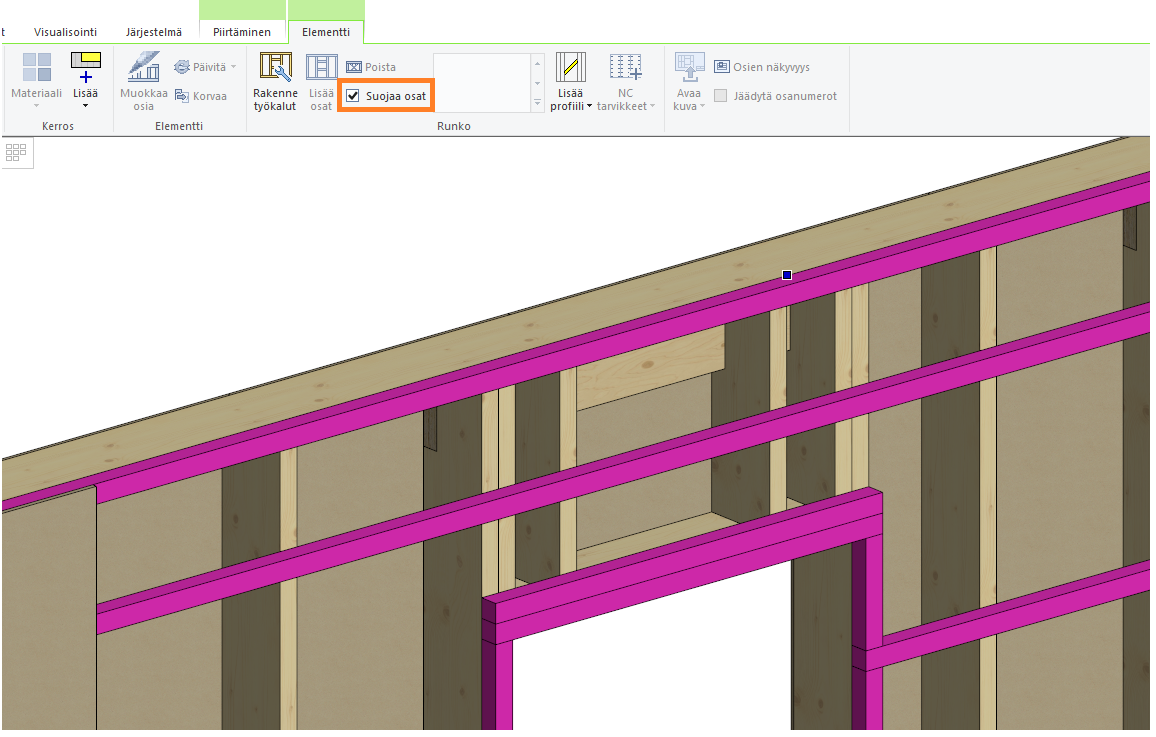 Voit estää kerroksen osien uudelleen generoimisen suojaamalla osat.