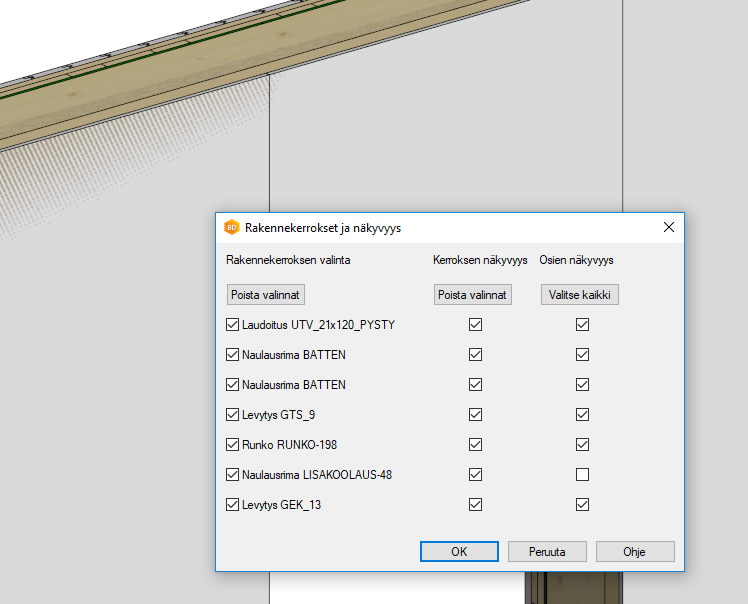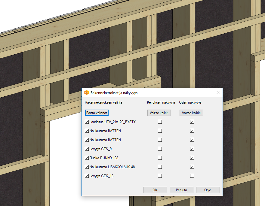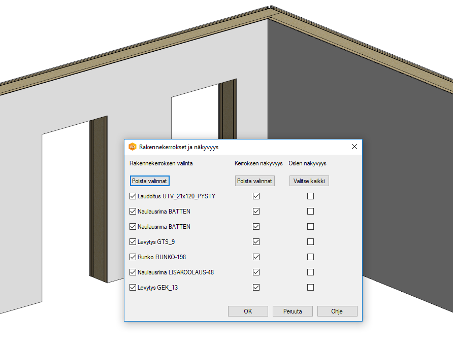 Elementtien rakennekerrokset nopeasti näkyviin.Aseta näkyvyys