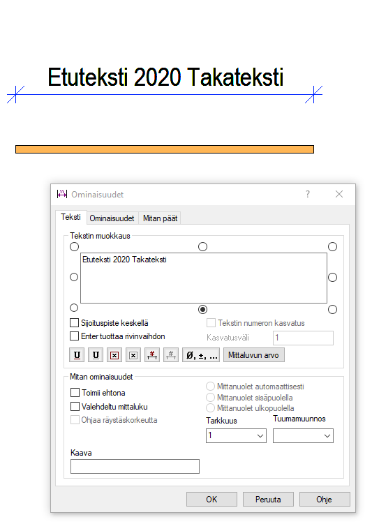 Mittaan voi lisätä tekstiä