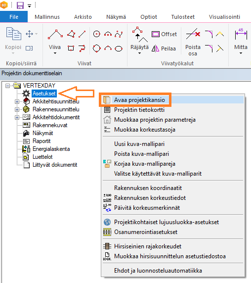 - Valitse Avaa projektikansio.
