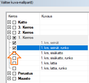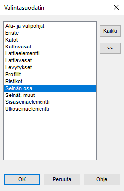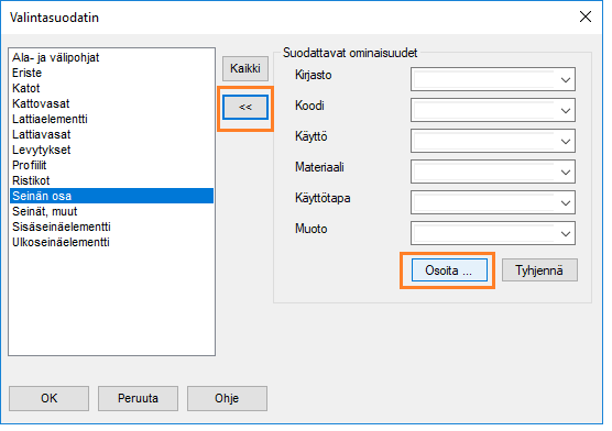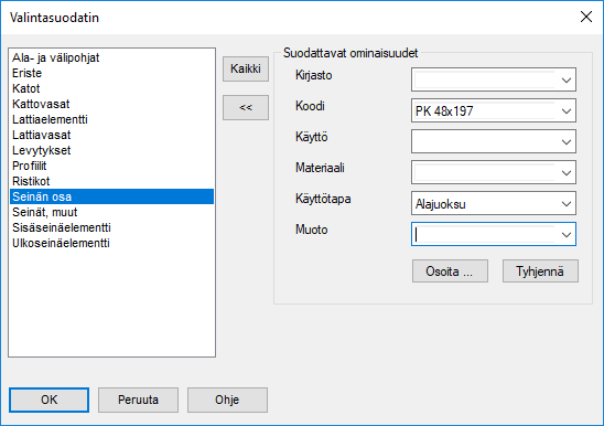 Valitse valintasuodattimessa Seinän osa: