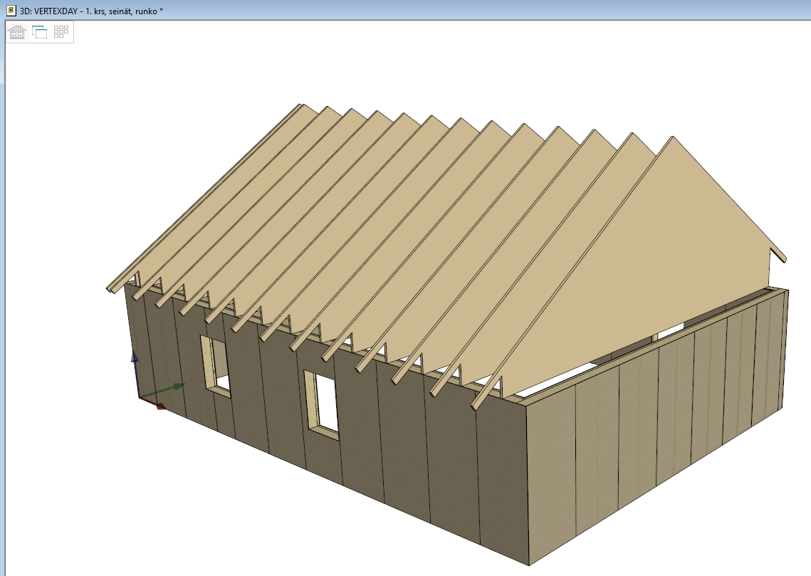 Ristikoiden / palkkien näkyvyys ARK/RAK -kuva-malliparissa.