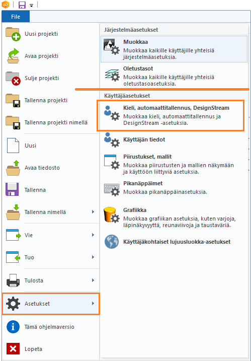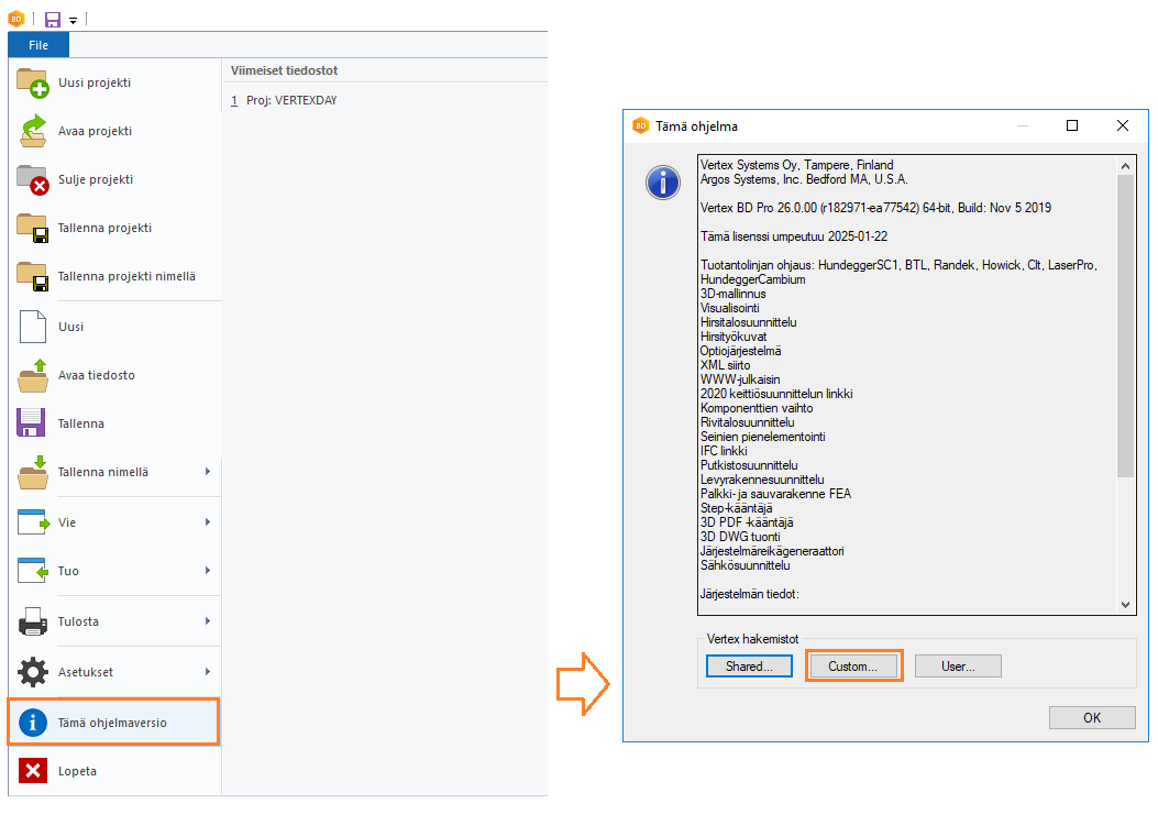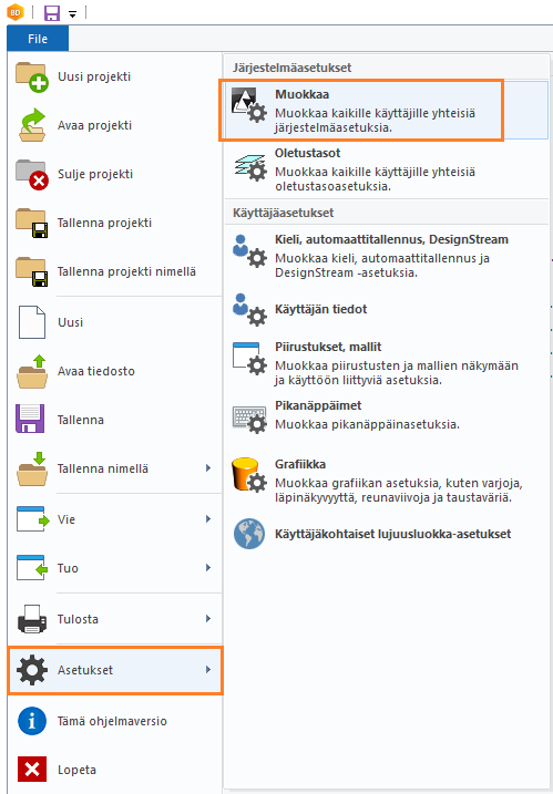 Tiedosto → Tämä ohjelmaversio