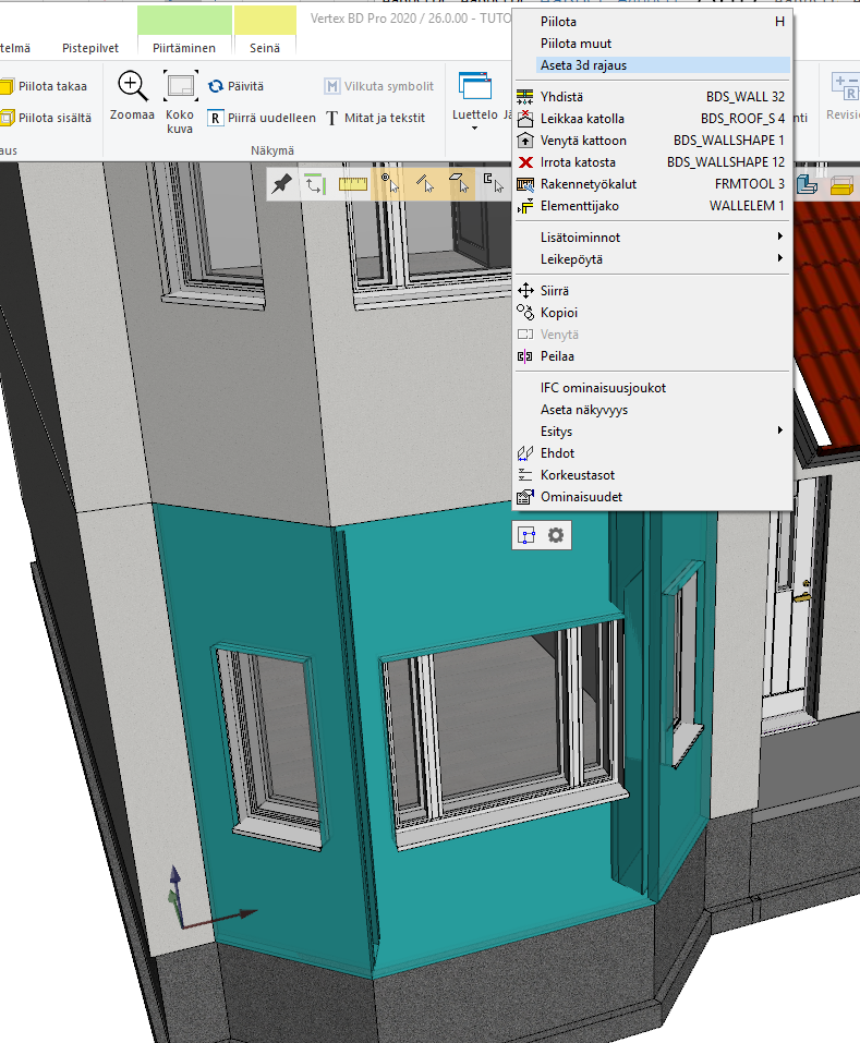 2D-piirustuksessa → Mallinnus → Täydentävät rakennusosat.