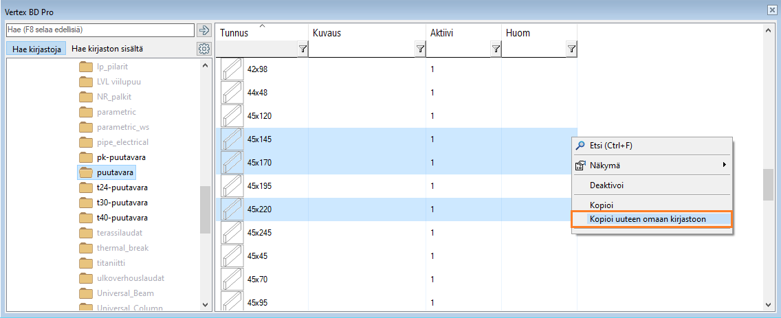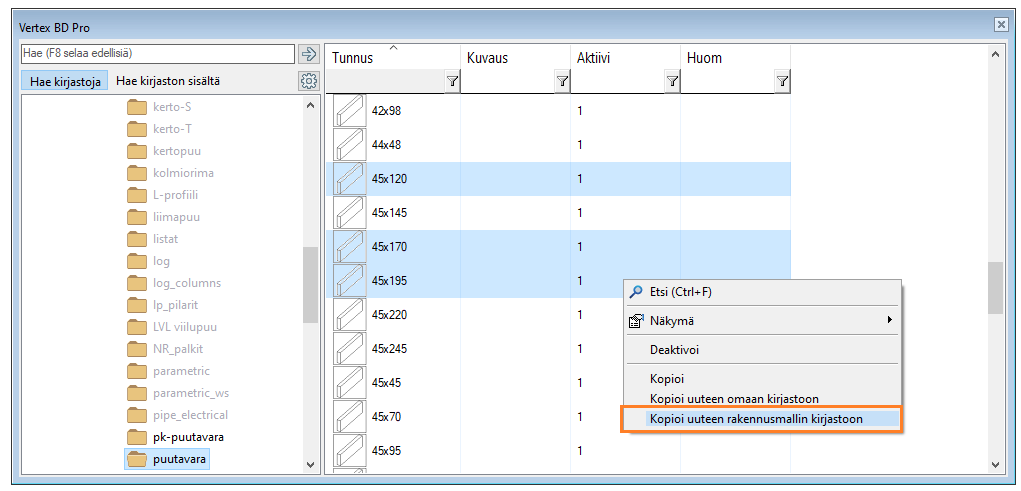 Voit myös luoda helposti rakennusmallikohtaisia kirjastoja sotkematta omia ympäristökirjastoja