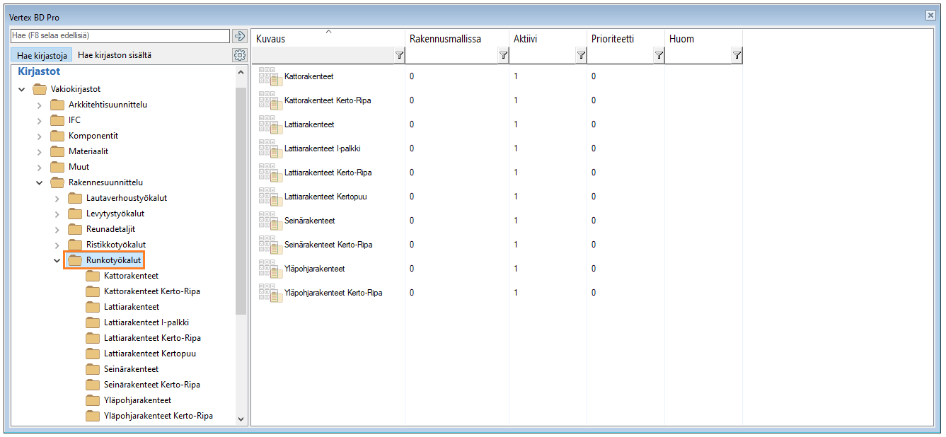 Kaikki rakennetyökalut nyt kirjastokäyttöliittymässä