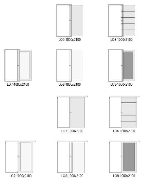 Standard-ovikirjaston kansiossa (Vakio-ovet) Liukuovet / Pinta-asennus tai Liukuovet / Sisäasennus