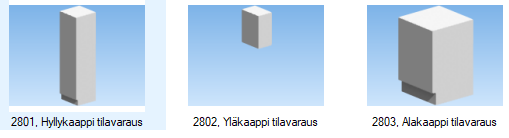 - Parametriset peruskaapistot (2801-2803) kaapistojen ja keittiöiden luonnosteluun