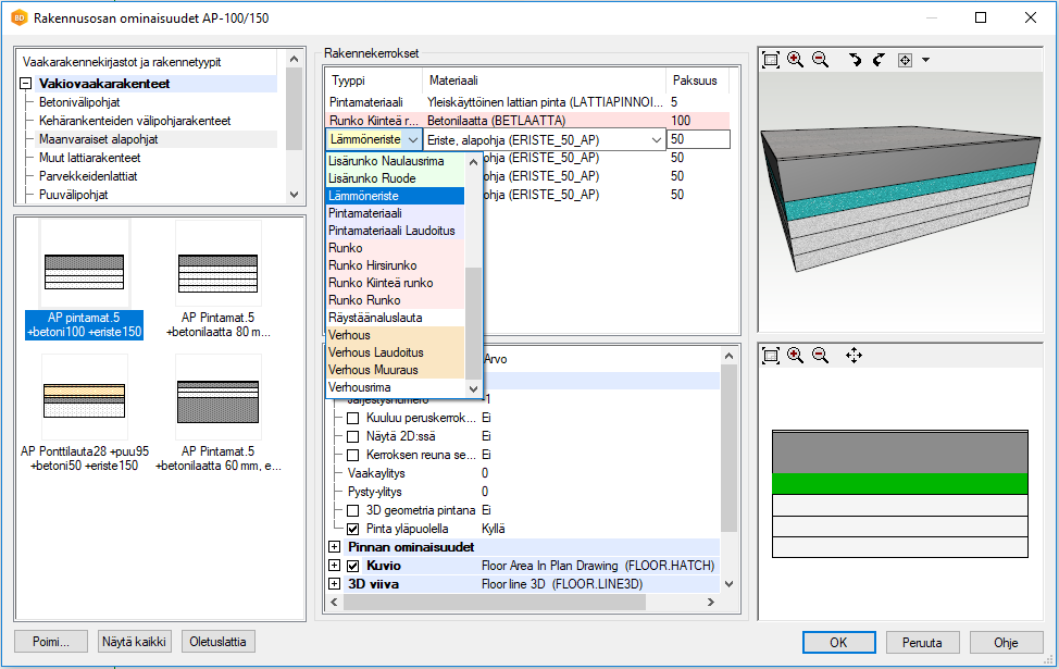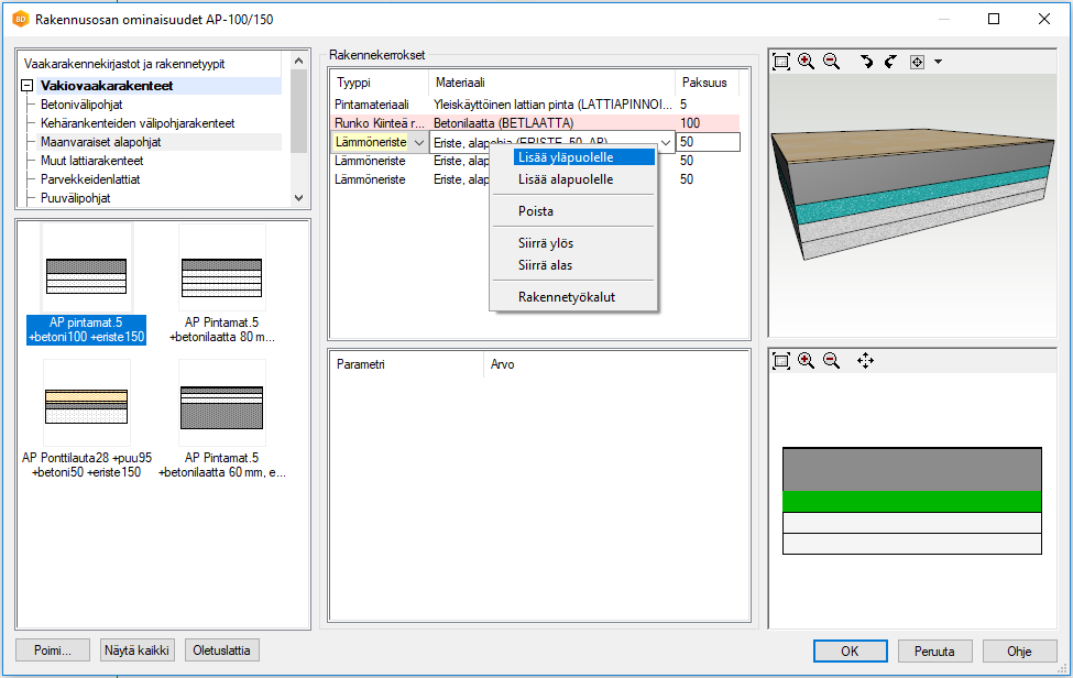 Materiaalin Paksuus -arvo päivittyy automaattisesti valitun materiaalin mukaan. Tarvittaessa voit myös kirjoittaa kenttään haluamasi arvon.