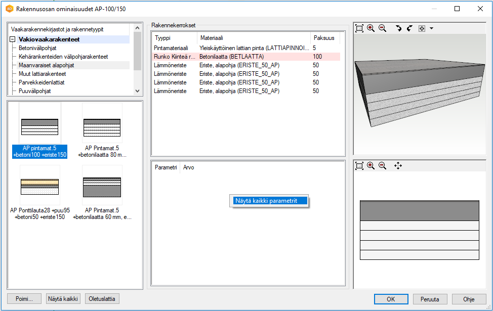 Liikuta hiiren osoitin parametrien luetteloruutuun ja valitse hiiren kakkospainikkeen takaa avautuvasta tilannekohtaisesta valikosta toiminto Näytä kaikki parametrit.