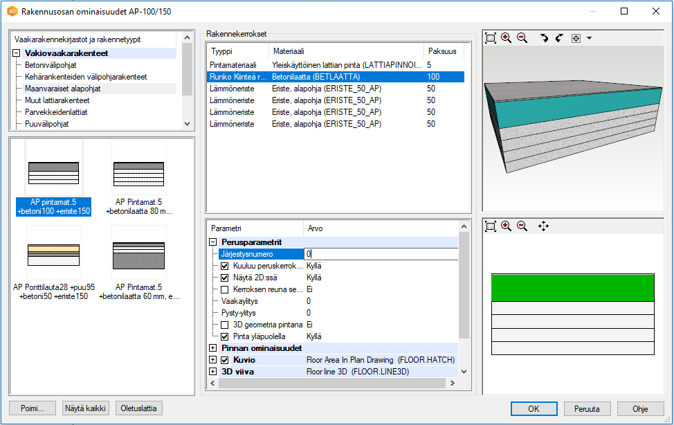 Kerroksen järjestysnumero löytyy parametrien luetteloruudusta osiosta Perusparametrit, kun kerros ja Näytä kaikkiparametrit on valittuna