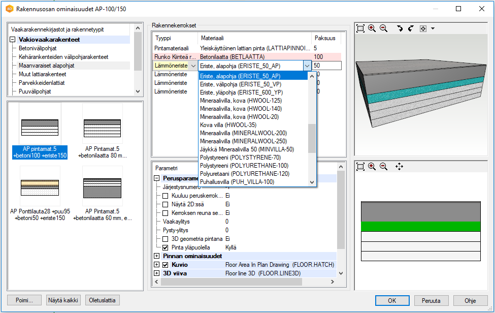 Valitse Materiaali alasvetovalikosta. Alasvetovalikossa on listattu kaikki valitulle tyypille mahdolliset vaihtoehdot.