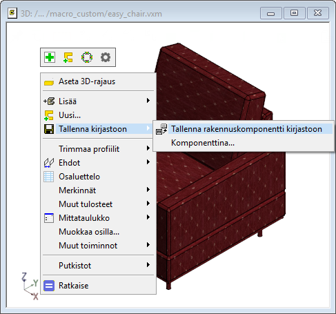 Valitse hiiren kakkospainikkeella avautuvasta valikosta Tallenna kirjastoon > Tallenna rakennuskomponentti kirjastoon.