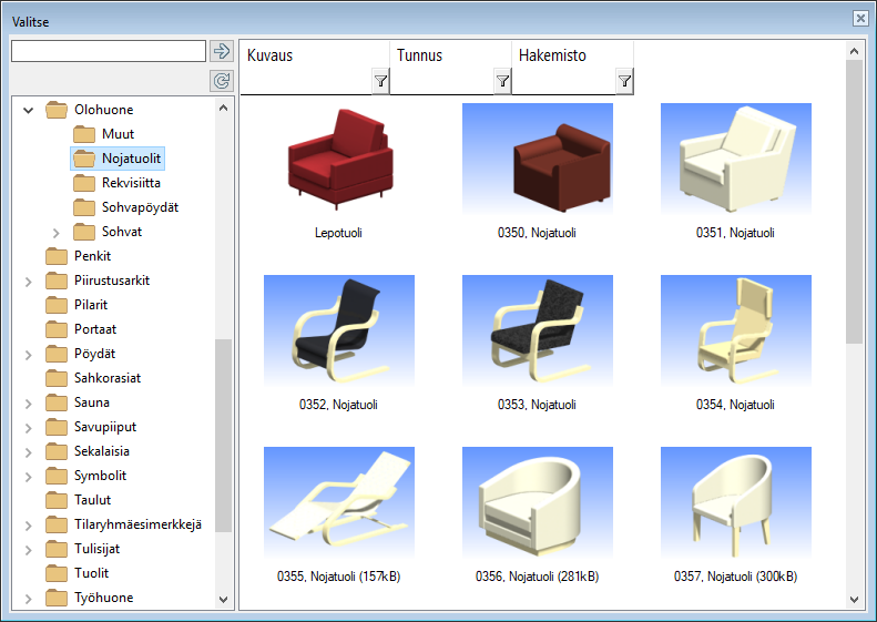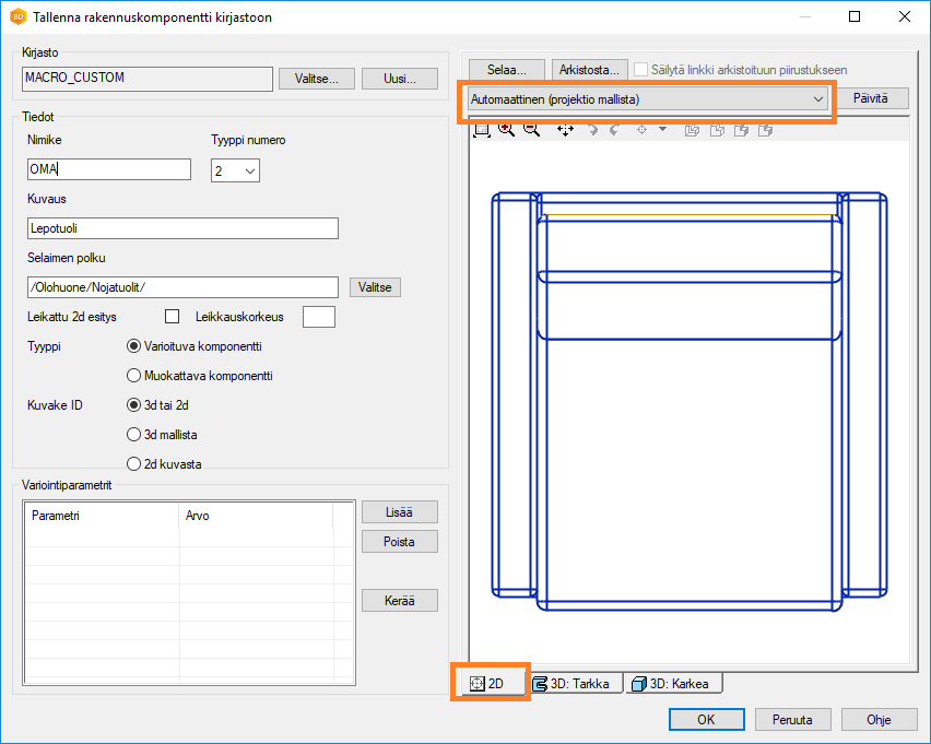 - Automaattinen (projektio mallista) - Ohjelma muodostaa 2D-symbolin mallin päältä katsotusta projektiosta.