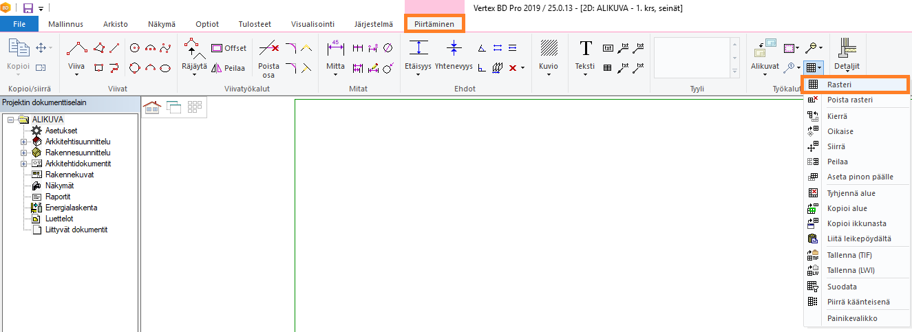 Valitse Piirtäminen | Työkalut | Rasterikuvat > Rasteri.