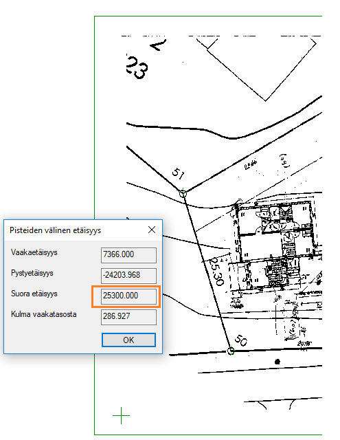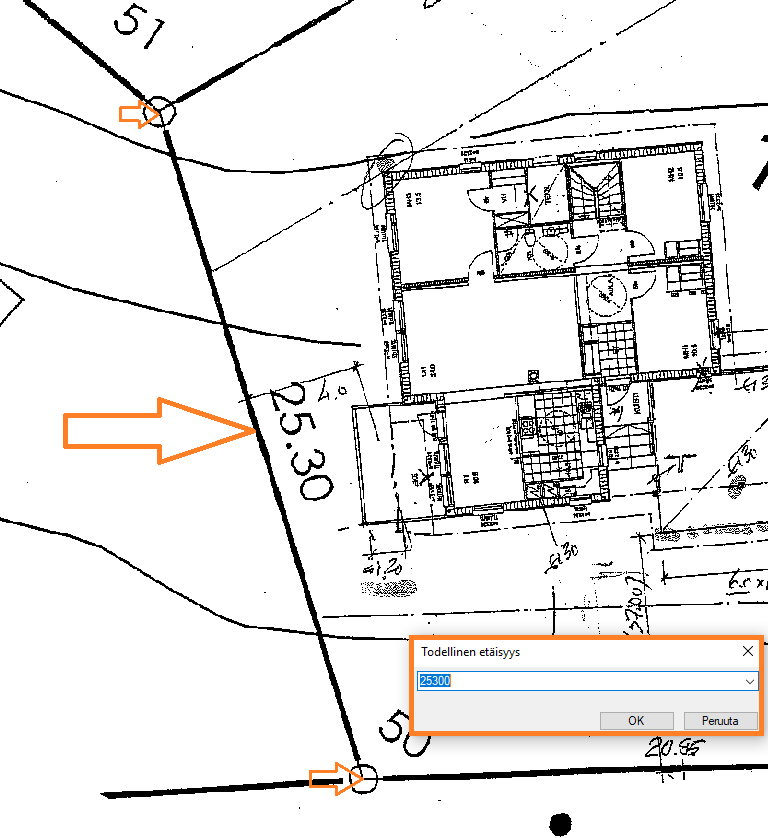 Osoita pisteet, joiden välinen etäisyys on tiedossasi. Anna etäisyys teksti-ikkunaan.