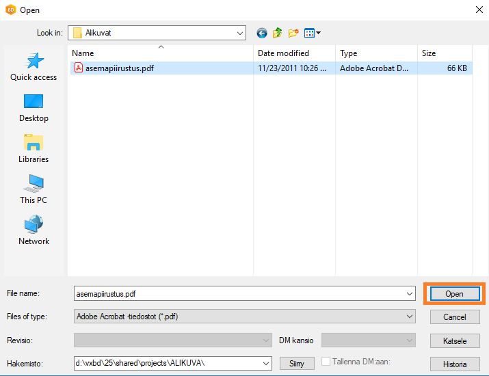 Aseta pdf-tiedosto esimerkiksi origoon.