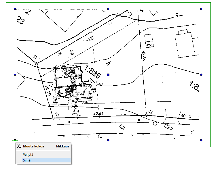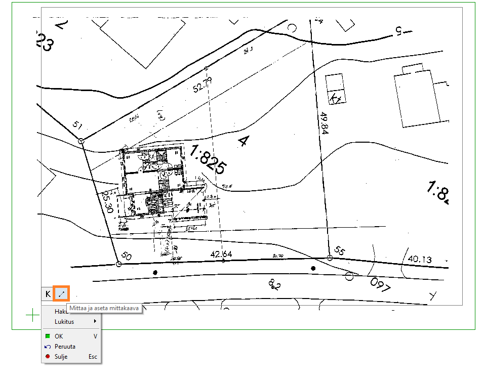 Avaa hiiren oikealla avautuva valikko uudelleen, ja valitse Mittaa ja aseta mittakaava.