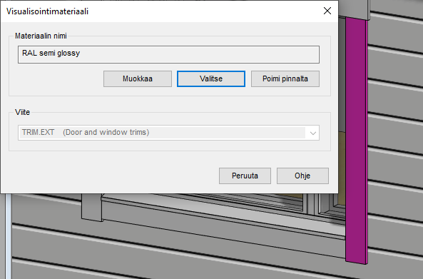 Vaihda viitteen visualisointimateriaalia rakennusmallissa