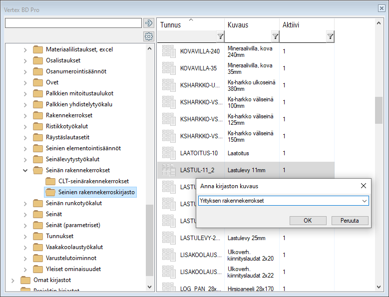 Tässä artikkelissa lisätään uusi levytyskerros seinien rakennekerroskirjastoon. Artikkelissa lisätään myös käytössä olevat levykoot levytyskirjastoon, jotta seinän elementointi on mahdollista.