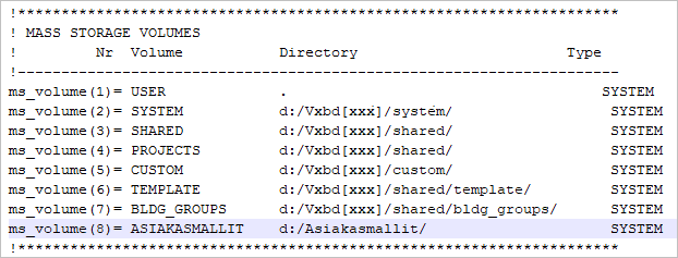 - Etsi tiedostosta ms_volume -alkuiset rivit.