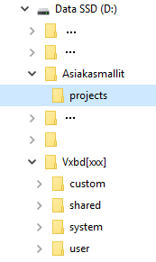Luo uusi kansio "Asiakasmallit", ja sen alle "projects" -niminen kansio.