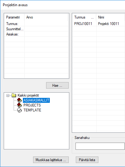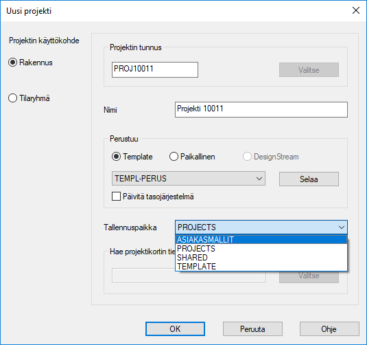 Voit nyt valita tallennuspaikaksi ASIAKASMALLIT, kun aloitat uuden projektin.
