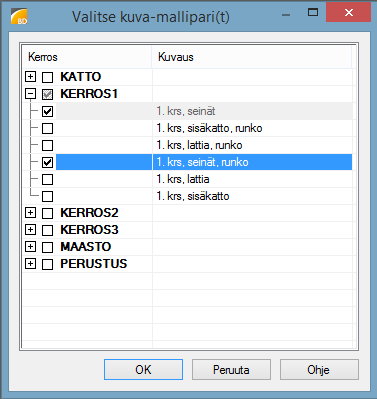 - Valitse yksi tai useampi rakennusosa.