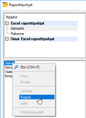- Valitse kopioitava raporttipohja.