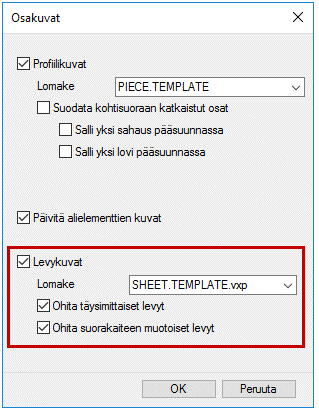 Voit muodostaa osakuvat elementin tai palkiston levyistä. Voit muodostaa osakuvat kaikista levyistä, tai voit ohittaa täysimittaiset ja/tai suorakaiteen muotoiset levyt.