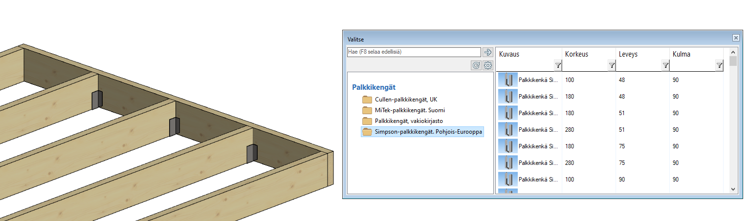Z klipsit löytyy HANGER_CULLEN kirjastosta ja ne voidaan lisätä I-palkkien väliin ylälaippaan