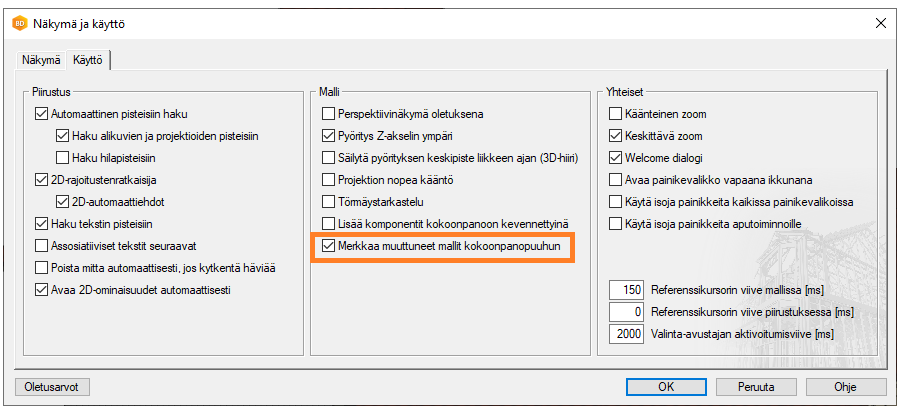 Jos pois päältä = G4-osien automaattinen päivitys projektiin lisättäessä