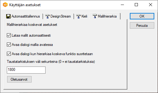 Mallihierarkian asetukset käyttäjän asetuksissa