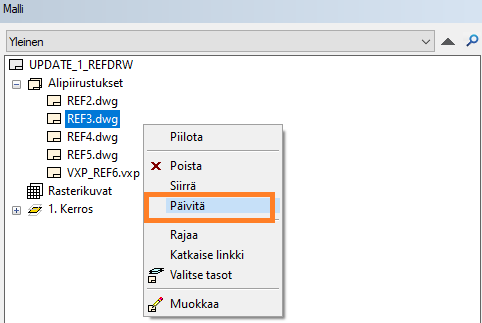 Voit nyt päivittää yksittäisen viitepiirustuksen.