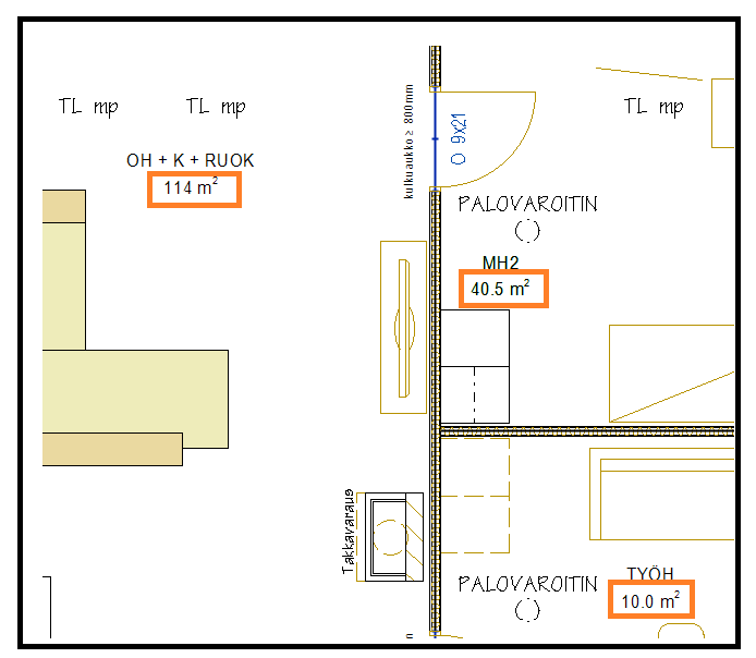 Voidaan asettaa avainasanalla room_label "#NAME#|#AREARND# m\^2" vxsettingssissä, lisätietoja ohjeesta