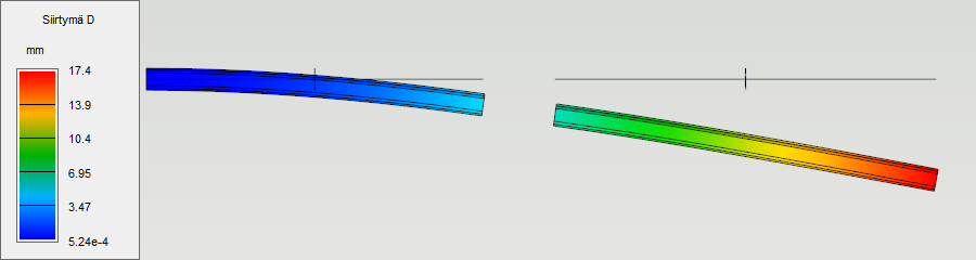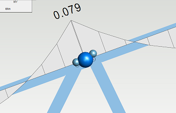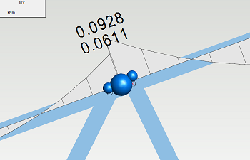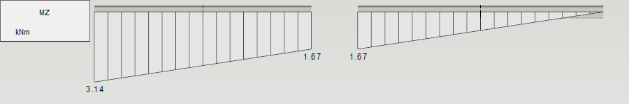 Alla olevissa kuvissa on kattoristikon yläpaarteen taivutusmomenttikuvaaja eri kytkentätyypeillä toteutettuna. Kaikki kytkennät on nivelöity ristikon tasossa (kuvan tasossa). Ensimmäisessä kuvassa kaikki ristikon kytkennät ovat rigid link -tyyppisiä ja toisessa kuvassa master-slave -tyyppisiä. Yläpaarteella olevan pääsolmun kohdalle syntyy rigid link -tyyppisiä kytkentöjä käytettäessä porrastus taivutusmomenttikuvaajaan. Tämä johtuu kahden pääsolmuun kytketyn diagonaalin päätysolmun normaalivoimakomponenteista, jotka tuottavat pääsolmuun pistemomentit.