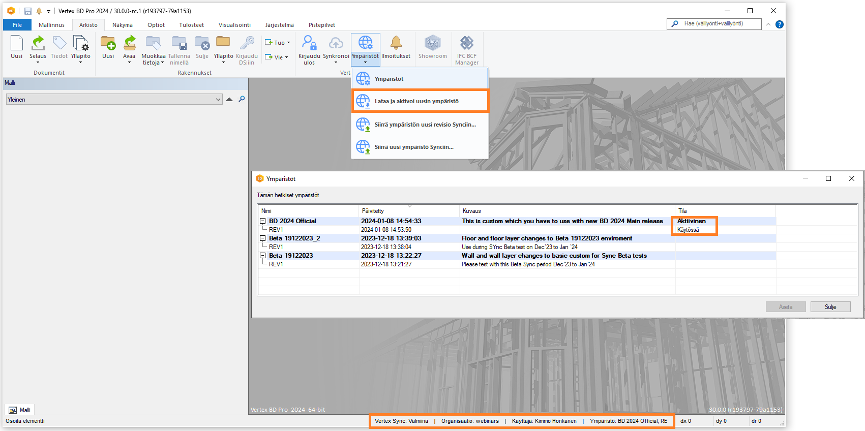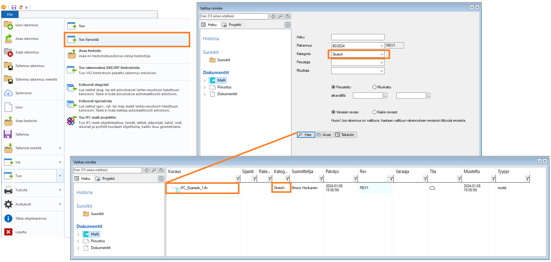 Käyttäjä voi tuoda IFC-tiedoston Syncistä