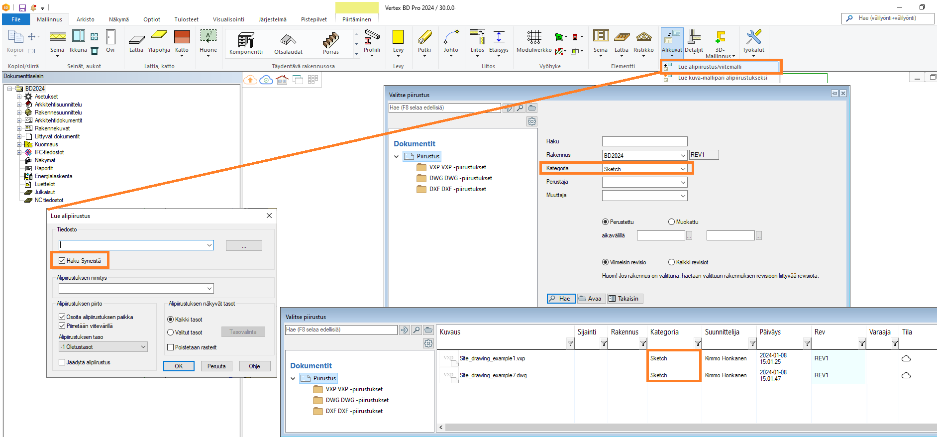 Käyttäjä voi tuoda alikuvan (dwg-tiedoston) Syncistä